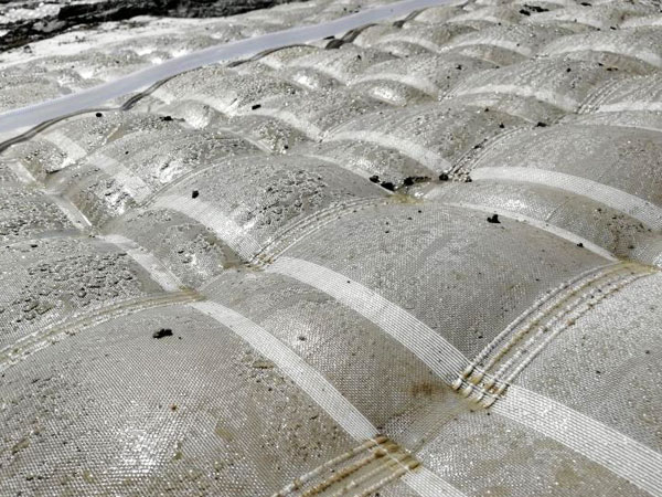 (3)土工模袋具有一定的透水性,在混疑士或水泥砂漿灌入以后,多余的水分通過織物空隙滲出,可以迅速降低水灰比,加快混疑土的疑固速度,增加混疑士的抗壓強(qiáng)度。